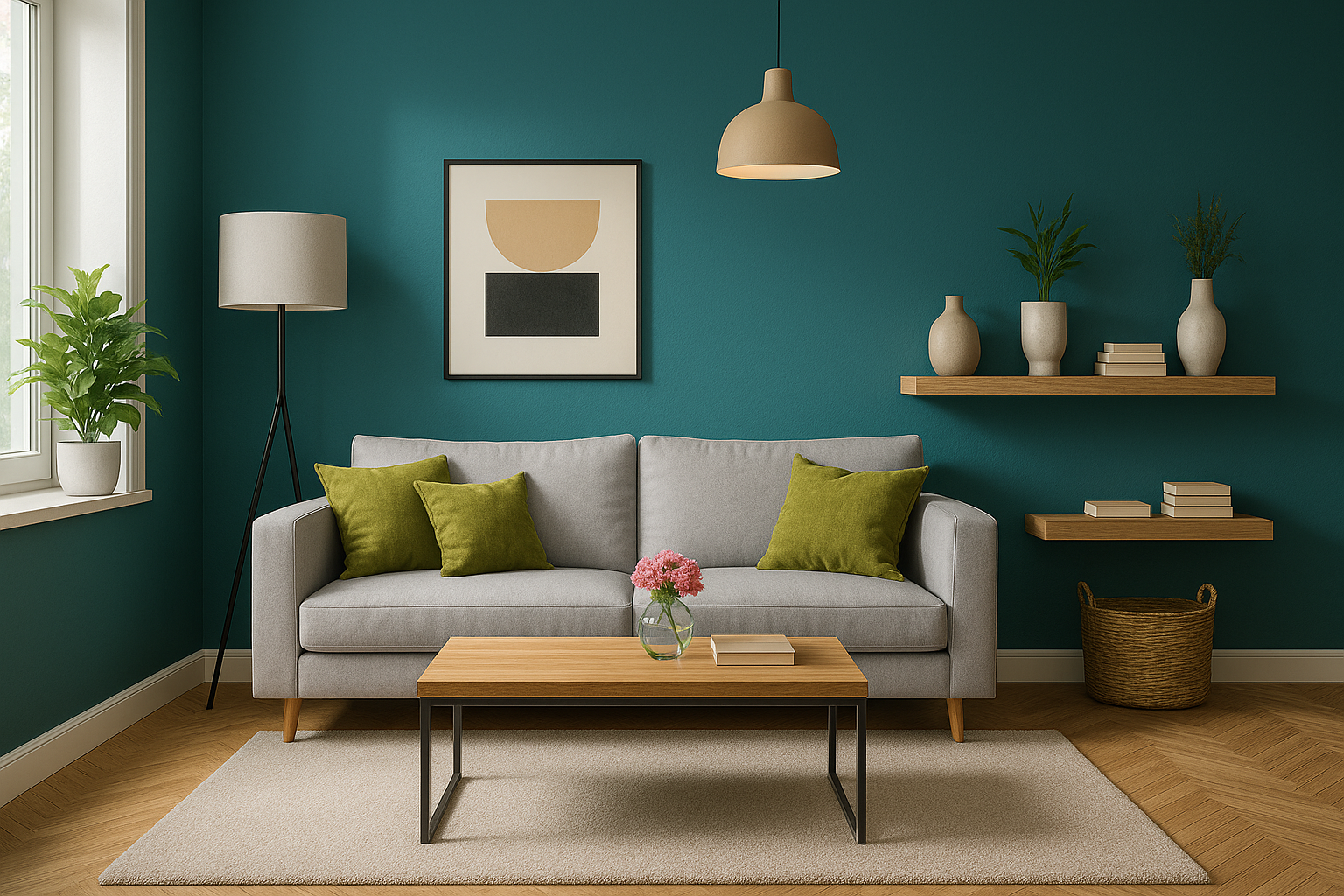 - Add a Statement Wall Color – Try cool tones like teal or navy to ground the room.